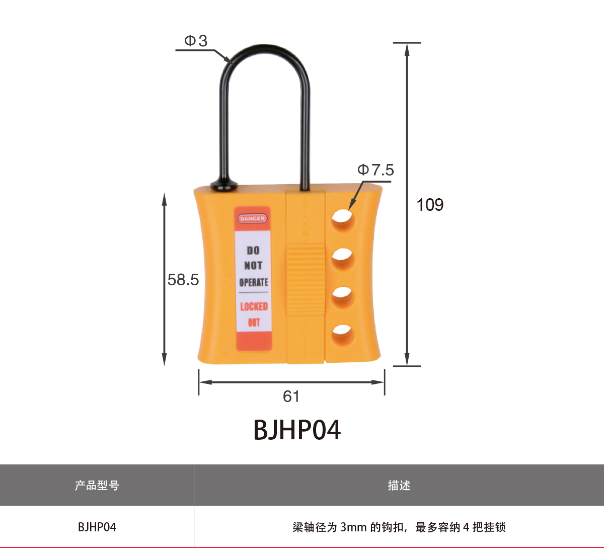 ◎ 四孔設(shè)計,可供4人同時上鎖,達(dá)到多人管理同個能量源的目的。