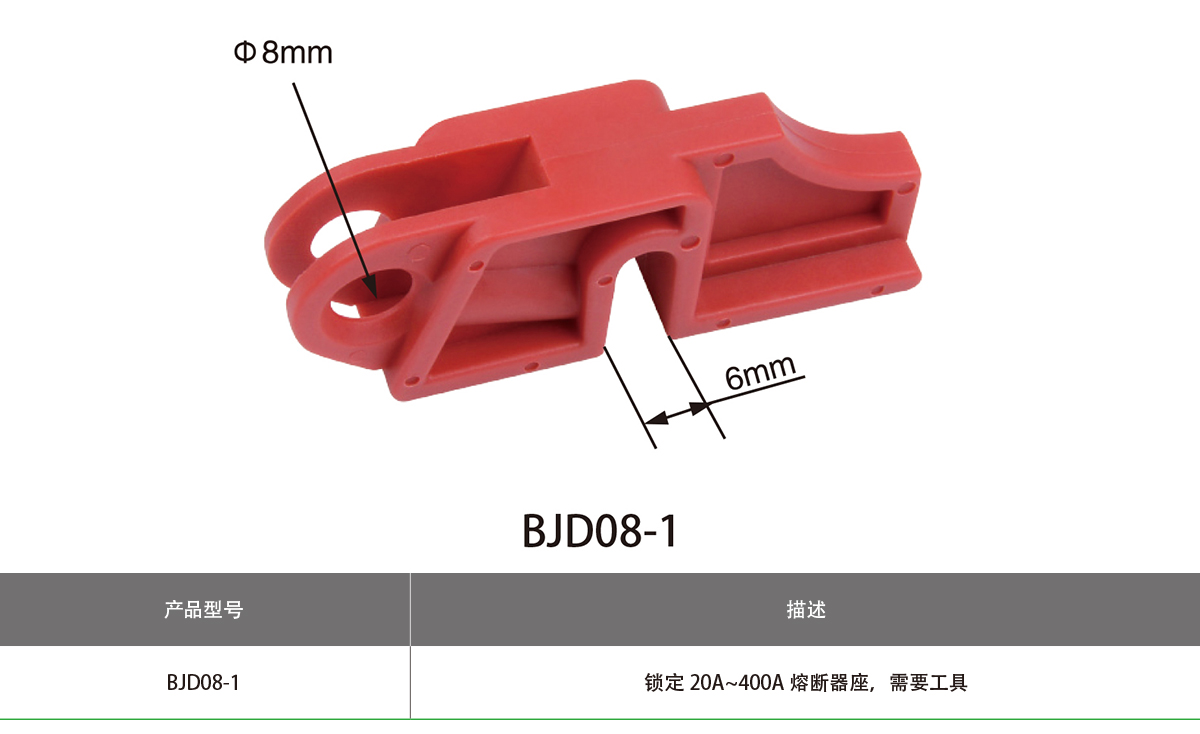 ◎ 由PA增強(qiáng)尼龍制成。◎ 可鎖定20A~400A熔斷器。