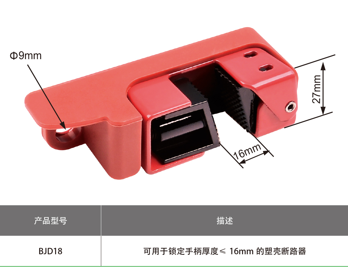 ◎ 由鋅合金材料/A3鋼板和改性增強(qiáng)尼龍制成。◎ 可鎖定手柄較高或較厚的斷路器。◎ 不需要任何其他的工具,即可輕松完成上鎖。◎ 鎖孔直徑9mm。