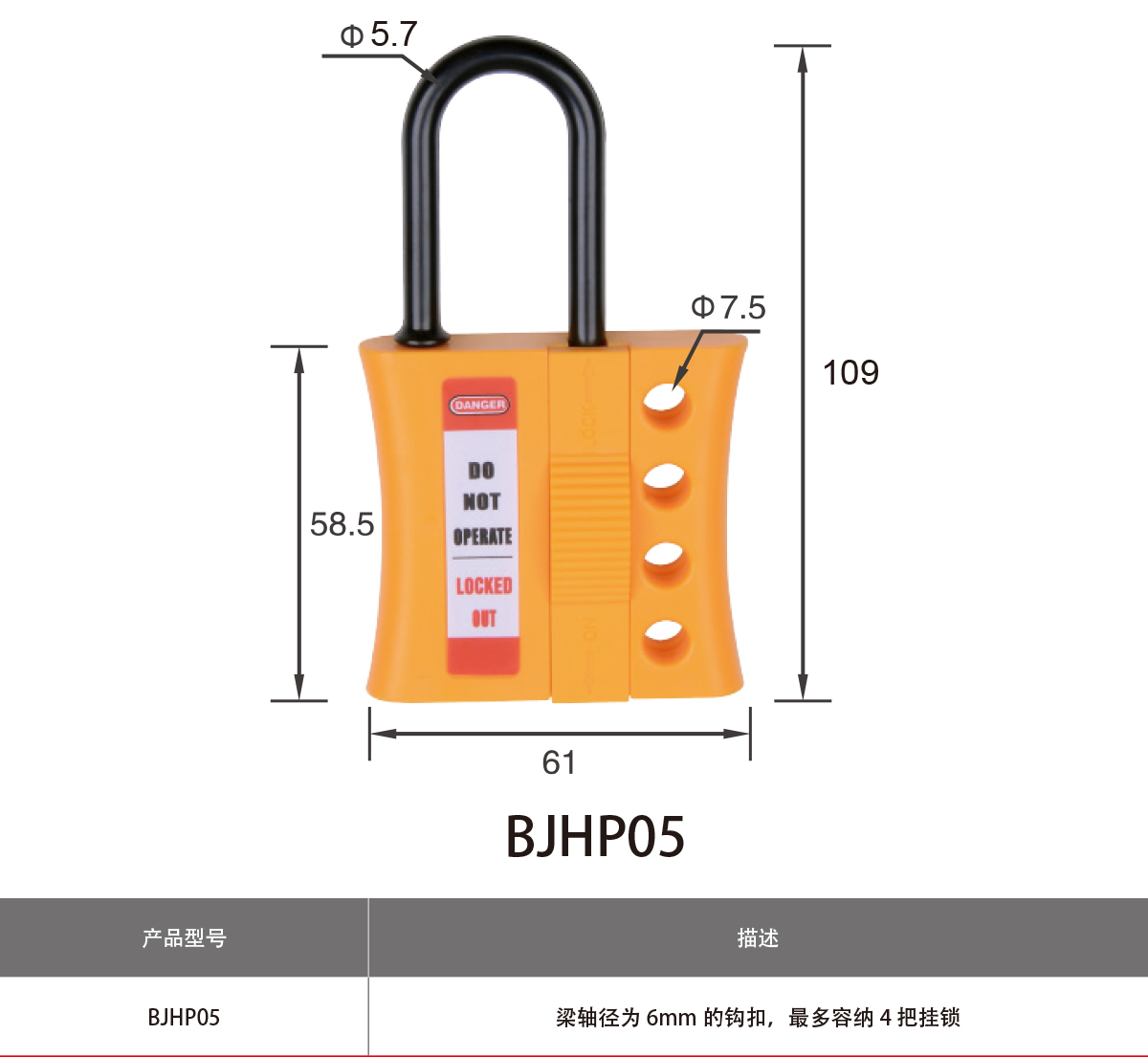 ◎ 四孔設(shè)計,可供4人同時上鎖,達(dá)到多人管理同個能量源的目的。